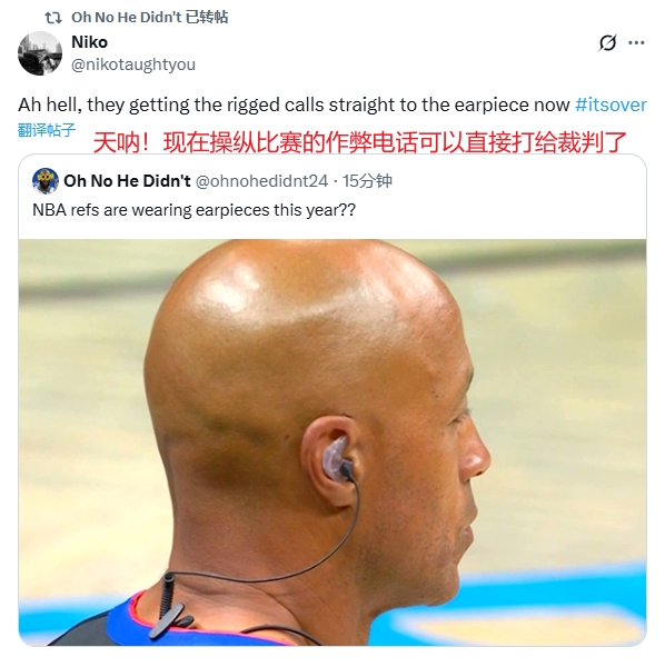 裁判戴耳机!美网友:詹姆斯指挥他们吹哨&作弊电话直接打到场上